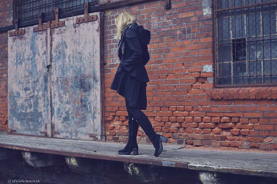 mroczna tunika: TUTAJ | torebka: ZAFUL | ogromna chusta: SZALEO | sznurowane kozaki: CZASNABUTY | spodnie: RESERVED